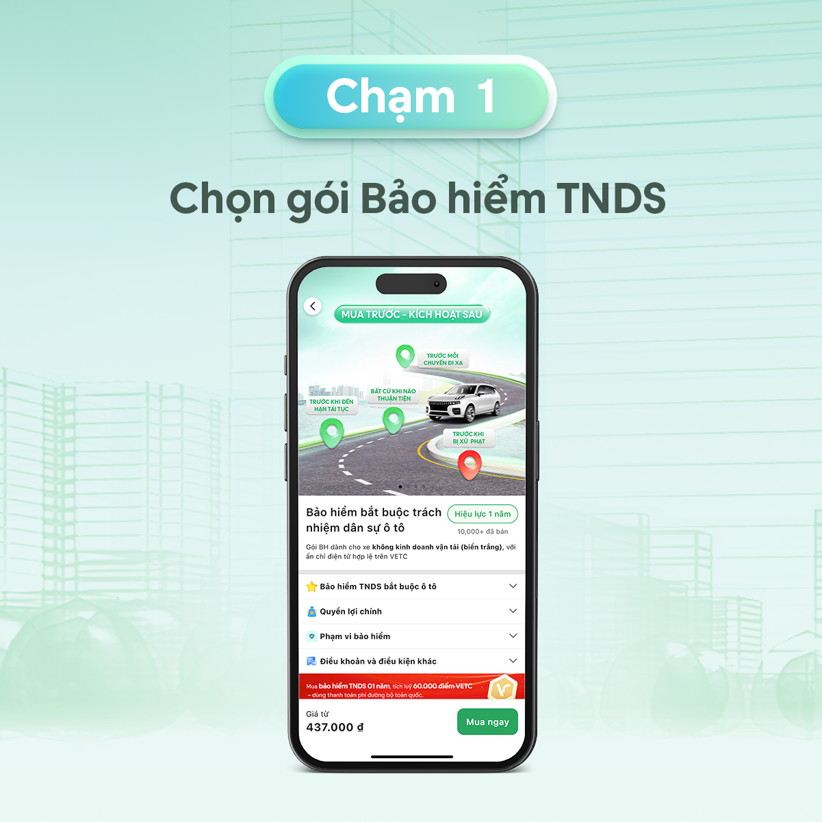 Mua bảo hiểm TNDS ô tô online trong 1 phút trên App VETC