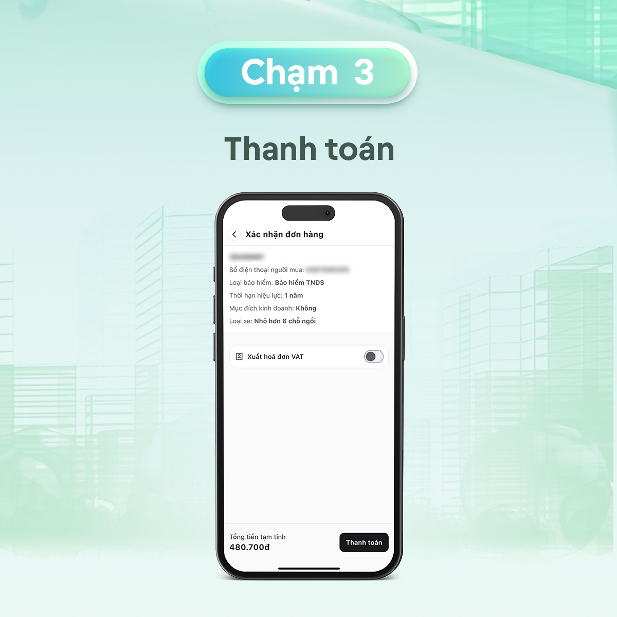 Bước 3: Thanh toán trực tiếp trên ứng dụng và nhận ấn chỉ bảo hiểm điện tử