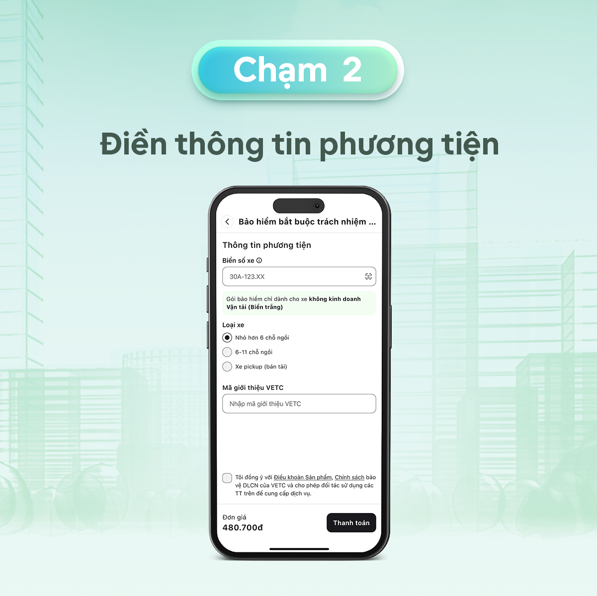 Trong khi đó, khi mua bảo hiểm TNDS trên App VETC, toàn bộ quy trình được tối giản. Người dùng chỉ cần vào App, lựa chọn gói bảo hiểm phù hợp và thực hiện thanh toán trực tiếp trên ứng dụng.